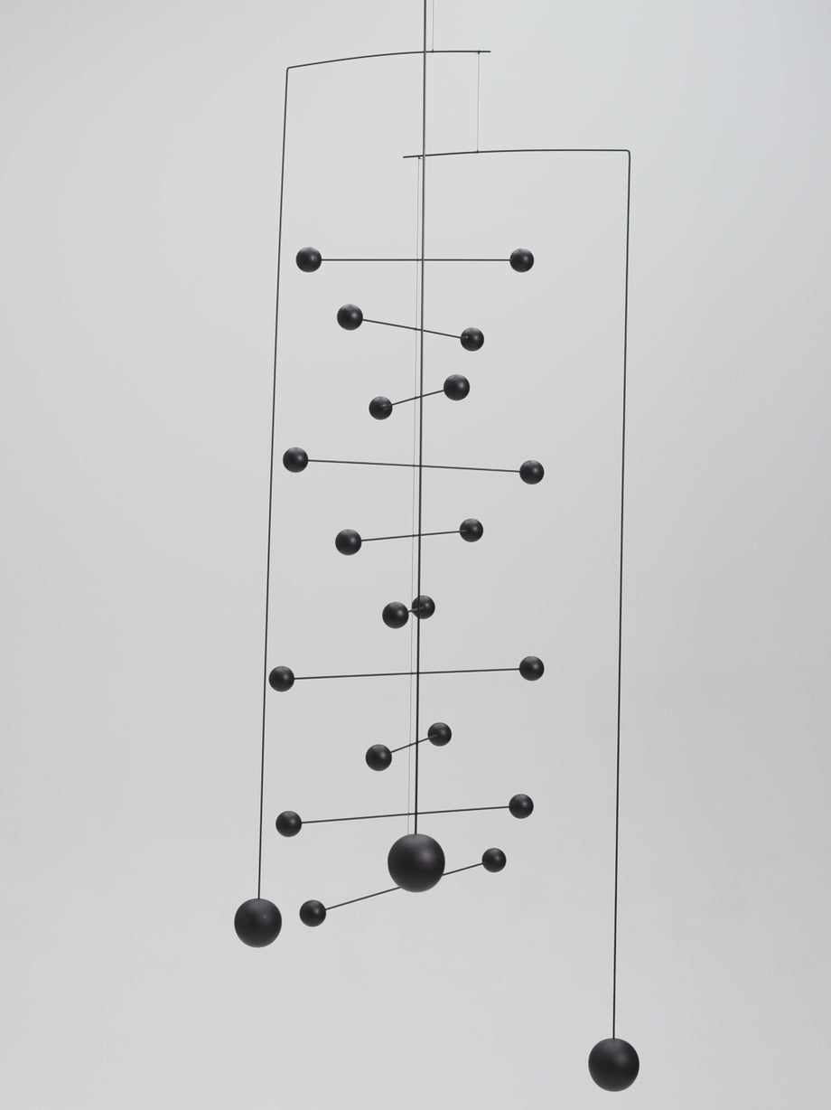 Counterpoint | Black | Size L fanger essensen af musikalsk komposition og design ved at blande uafhængige former i en harmonisk helhed. Designet af Ole Flensted i 2014 skaber dette store hængende kunstværk en visuel oplevelse, der komplementerer enhver indretning og stil i din stue, soveværelse, gæsteværelse eller gang.