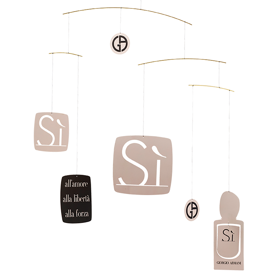 Lastly, our collaboration with Armani led to the development of a custom mobile designed to accompany the launch of their latest fragrance. These mobiles were displayed in stores, enhancing the brand's luxurious and refined atmosphere.