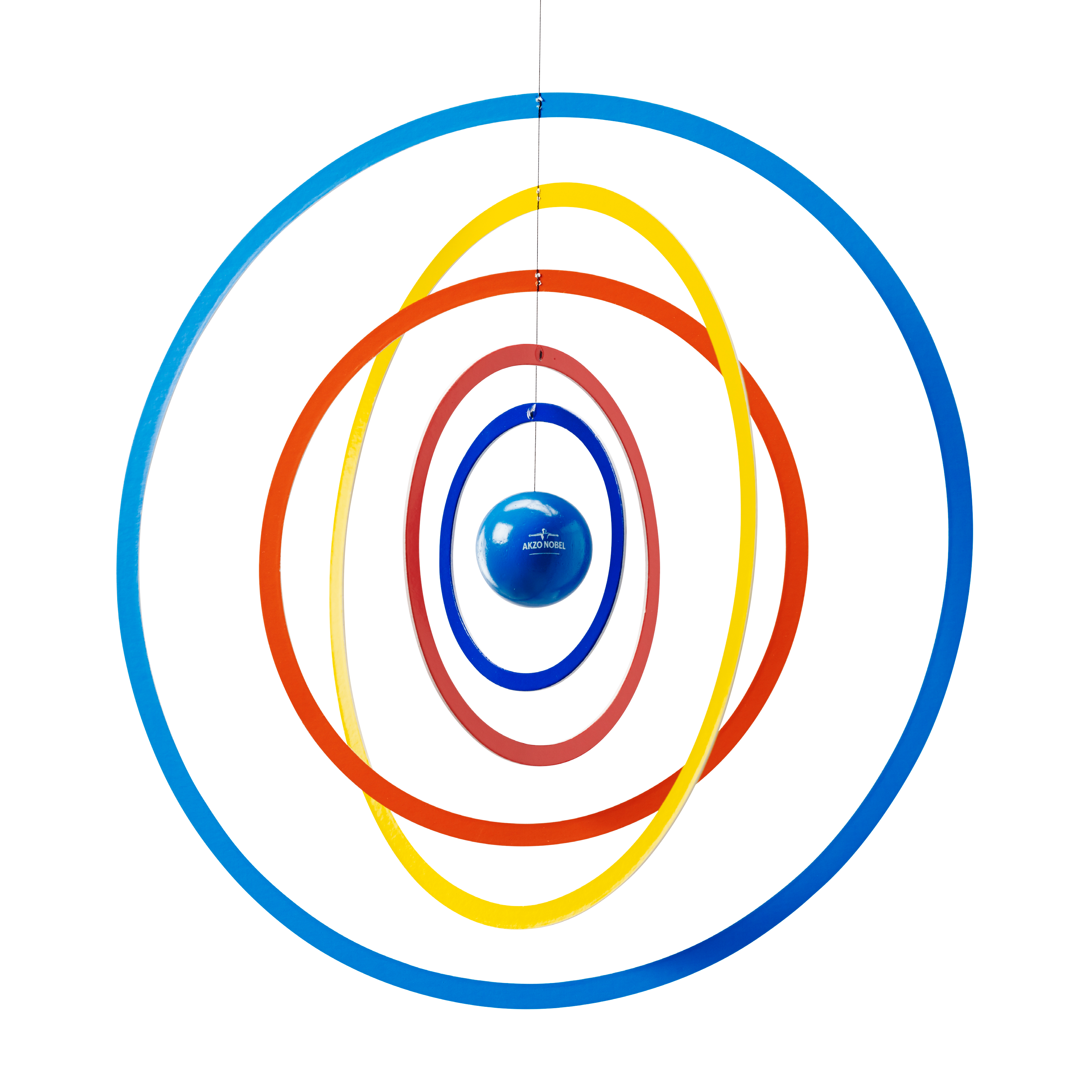 Starting with AkzoNobel, we adapted one of our standard mobiles to complement their new color line, resulting in a visually striking piece that perfectly aligns with their innovative approach.